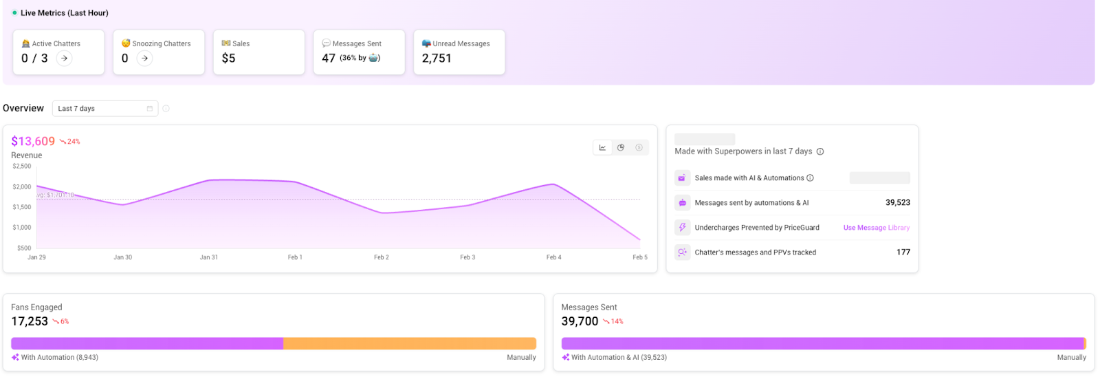Supercreator is built around how OFMs and agencies actually operate. It brings revenue data, fan behavior, and performance signals into one place so teams can understand what is happening without stitching together spreadsheets or exporting reports.