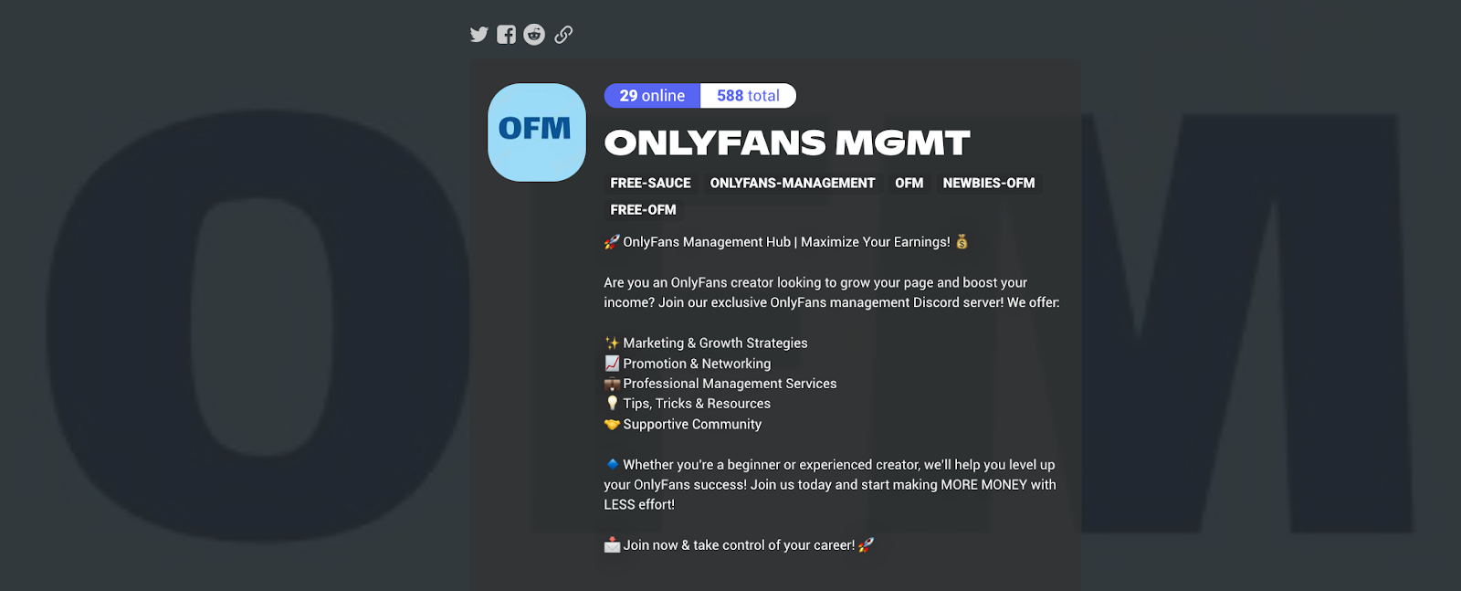 Among the most valuable Discord communities for creators today is OnlyFans Management Hub - an active server focused on promotion, networking, collaboration, and creator growth.Â