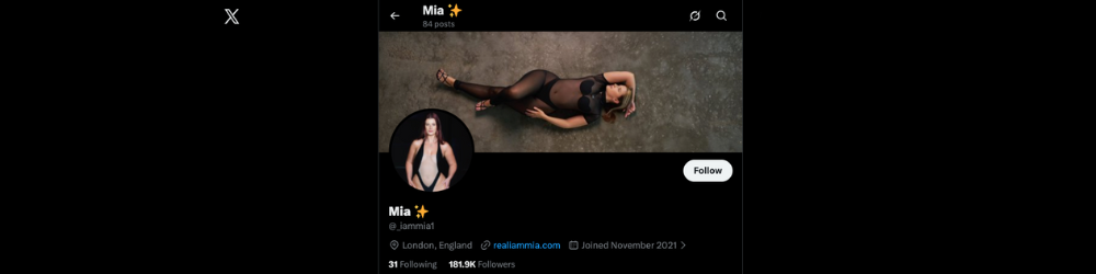 Mia’s content promotion strategies include posting content that contains links to multiple social media platforms. Her varied approach allows her to connect with audiences from multiple platforms. She also runs a subscription package for users searching for more explicit content. Like other creators on our list of the best OnlyFans Twitter accounts, Mia does not directly promote OnlyFans to avoid triggering Twitter’s policies. Her profile page contains a third-party link that leads to OnlyFans and other linked accounts.