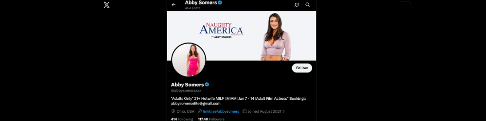 Abby Somers is one of the best OnlyFans Twitter accounts in the adult content niche. Her content varies between NSFW and SFW sexy photoshoots. She also collaborates with other creators to boost user engagement. Her unique appeal is the frequent teasers and discount offers included in her posts.Â