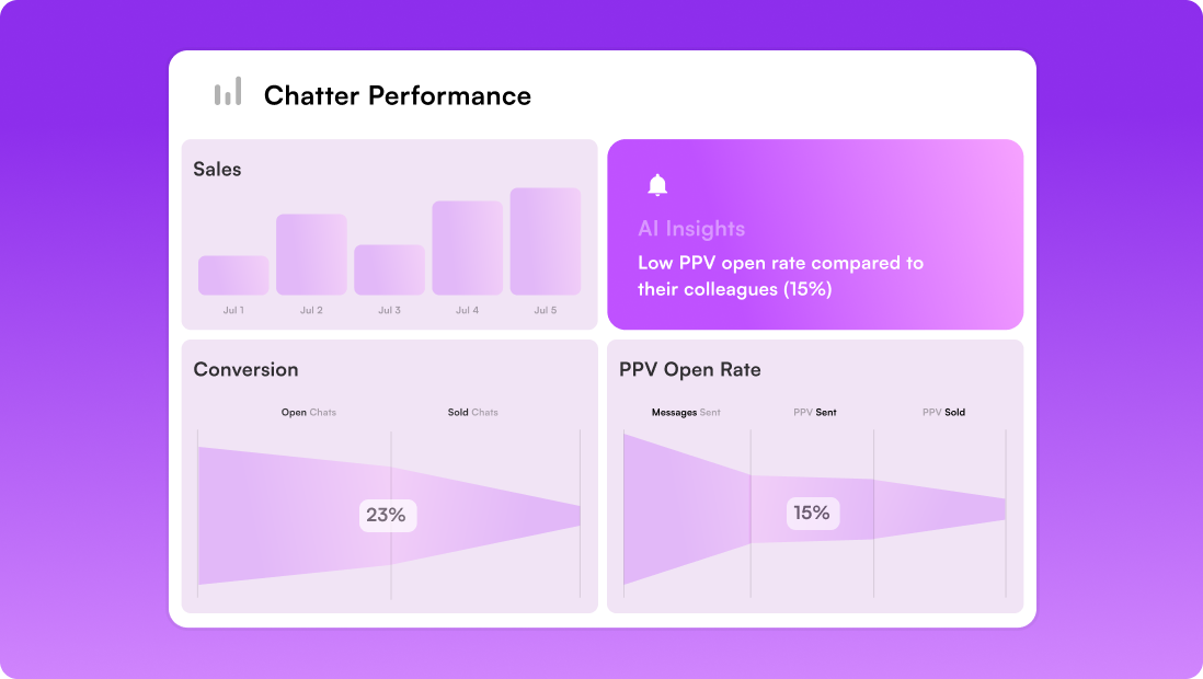 Add chatters, set permissions, and track performance in one place to keep operations consistent and easy to manage.